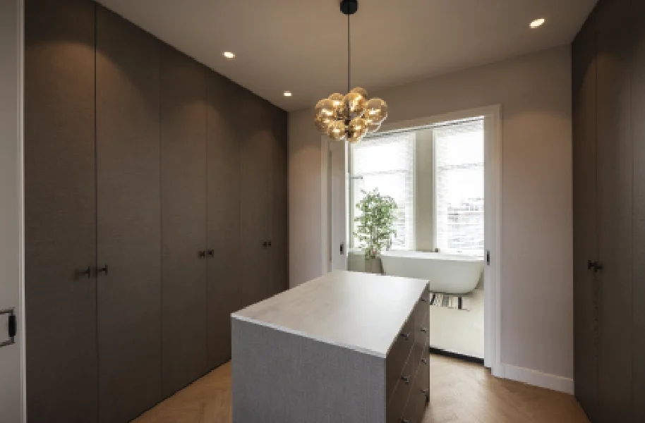 Dat spontane bezoek werd het begin van een soepel traject dat leidde tot een walk-in closet, een kast in de waskamer, een garderobekast en een wasmeubel in het toilet.
