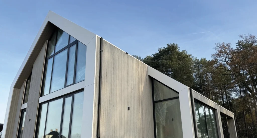Aluminium composiet bestaat uit meerdere lagen aluminium met daartussen een kunststof kern. Die opbouw zorgt voor een combinatie van stevigheid en een relatief laag gewicht. Daardoor is het materiaal goed te verwerken en geschikt voor verschillende toepassingen. Tegelijkertijd geeft het gebouwen een strakke, moderne uitstraling. Het materiaal wordt daarom veel toegepast bij nieuwbouw, renovaties en architectonische geveldetails.